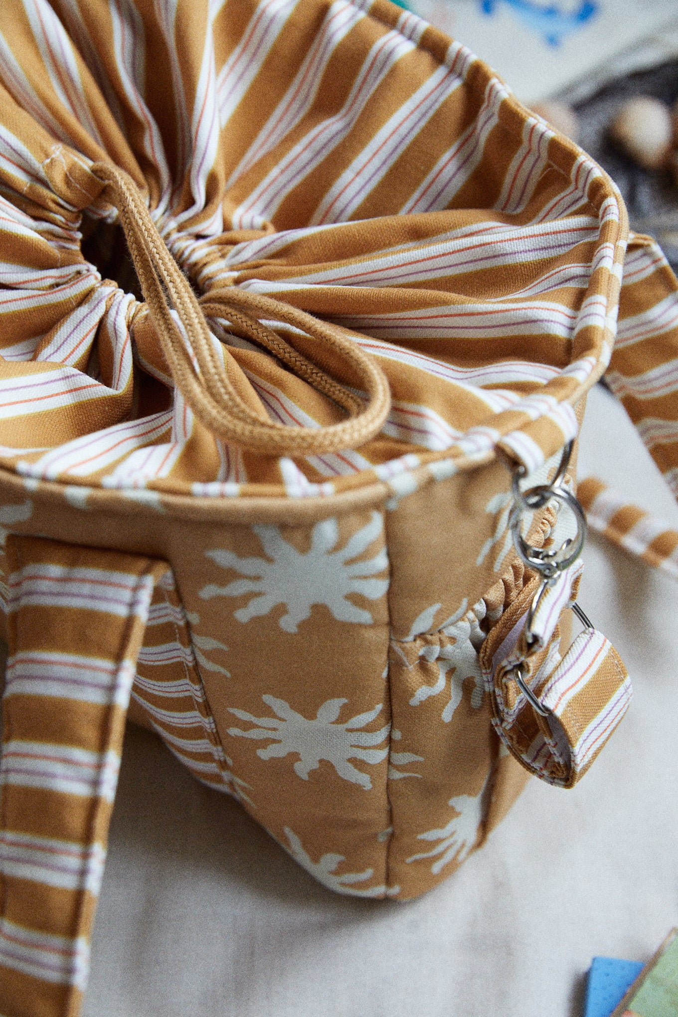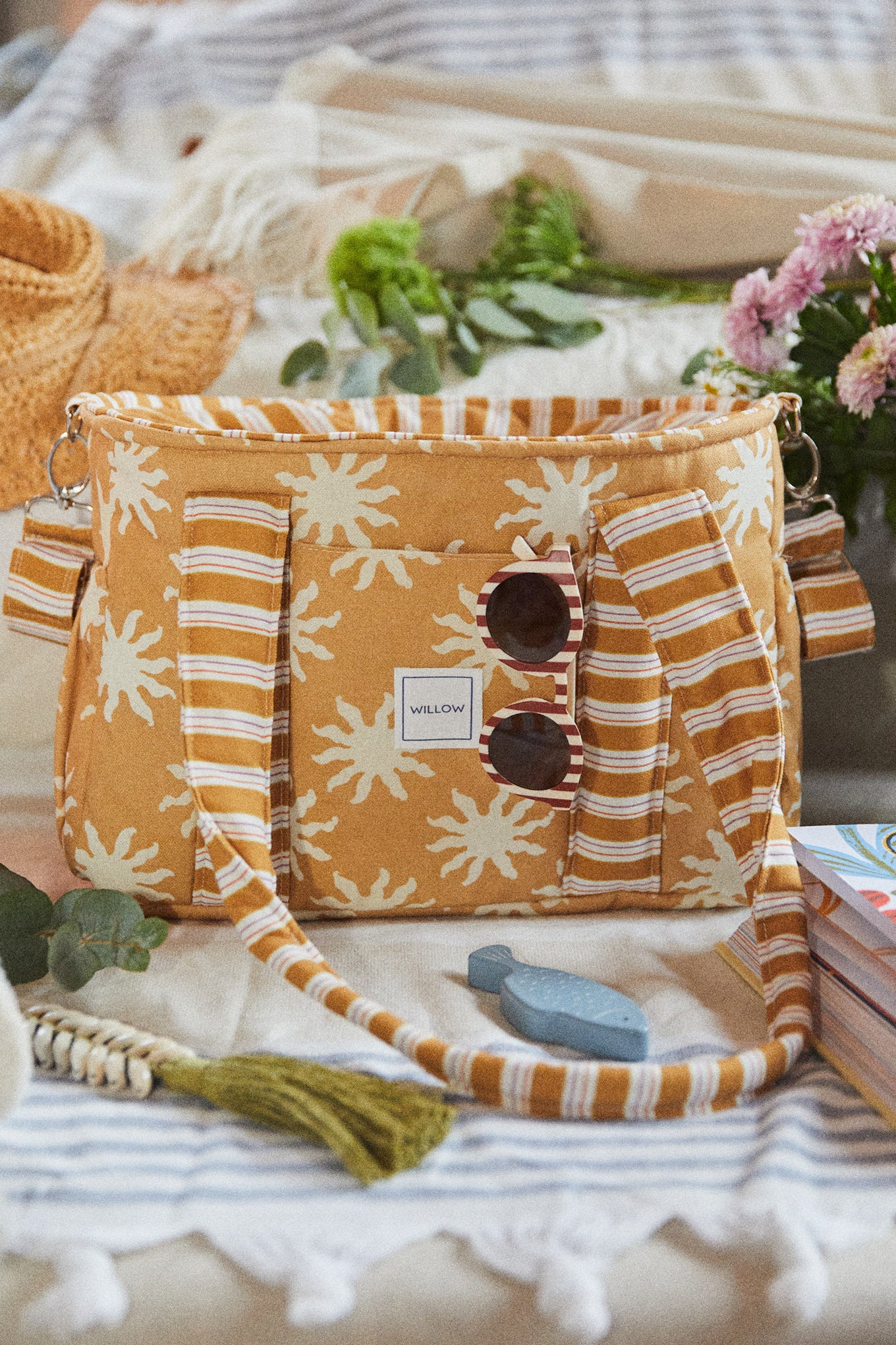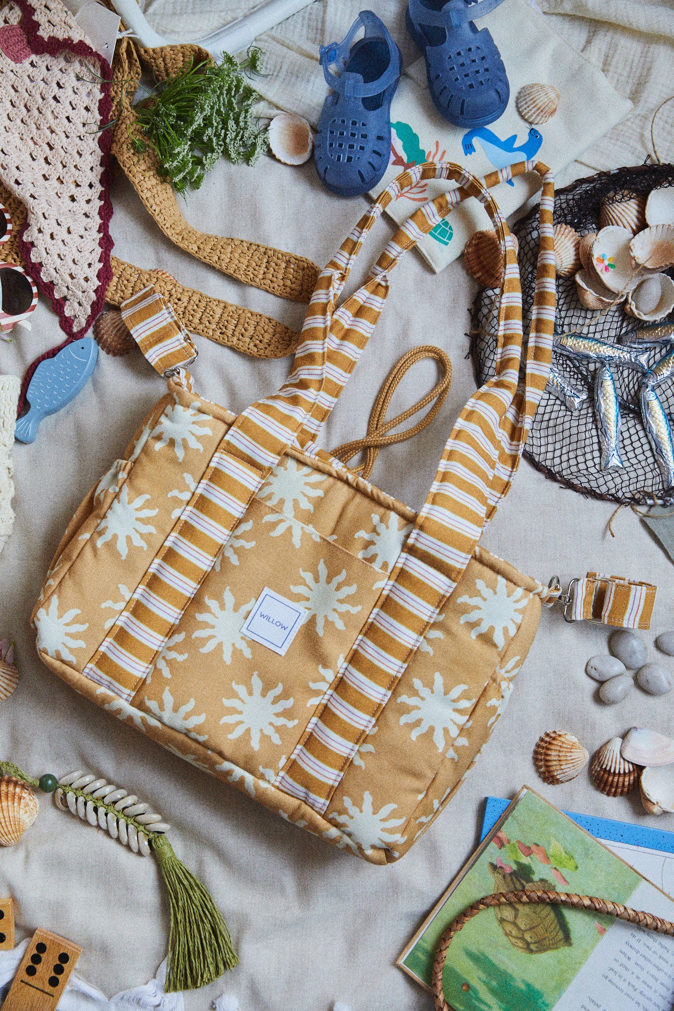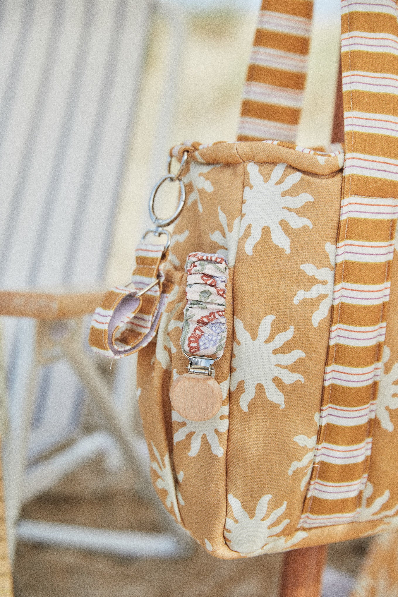 Se fija al manillar mediante cintas con mosquetones, un sistema práctico que permite colocar y retirar el bolso con facilidad. Las cintas permanecen sujetas al lateral del manillar del carrito, protegiendo así las cintas del bolso del desgaste y evitando el roce continuo. Con un gesto sencillo podrás desabrochar el bolso y llevarlo cómodamente a todas partes.