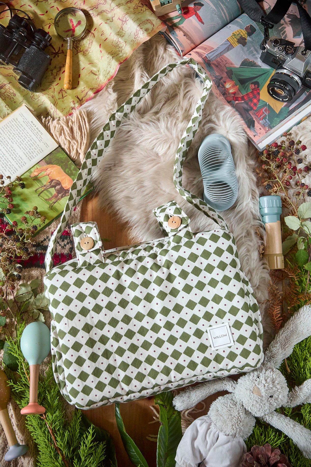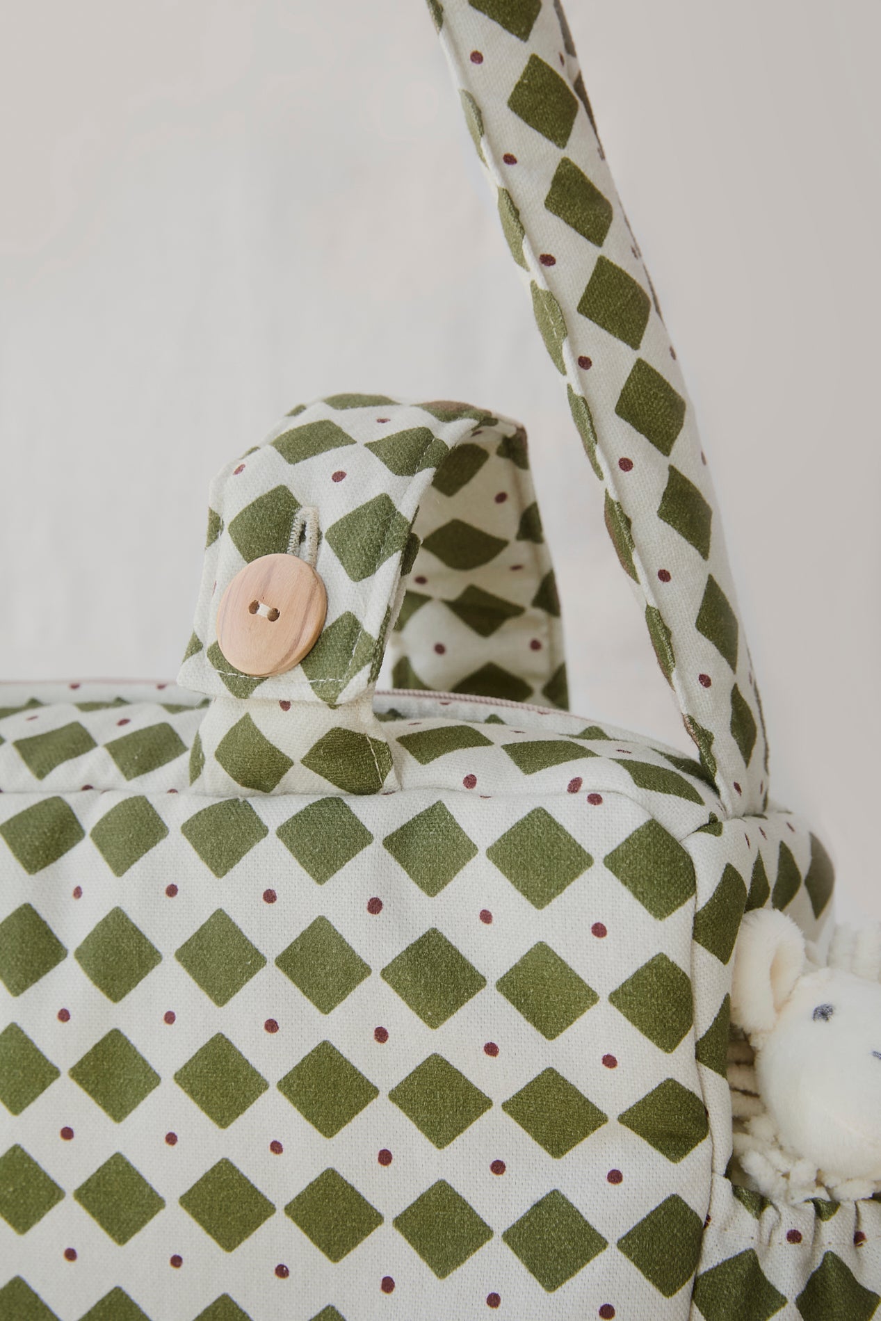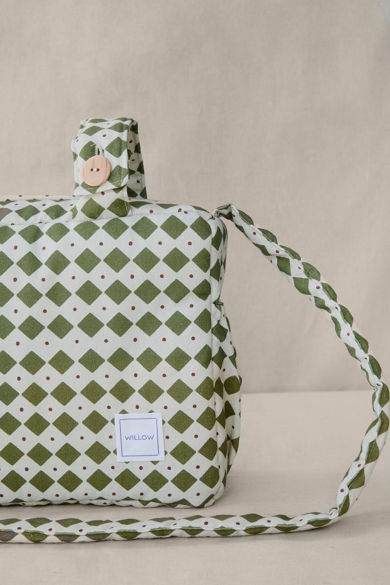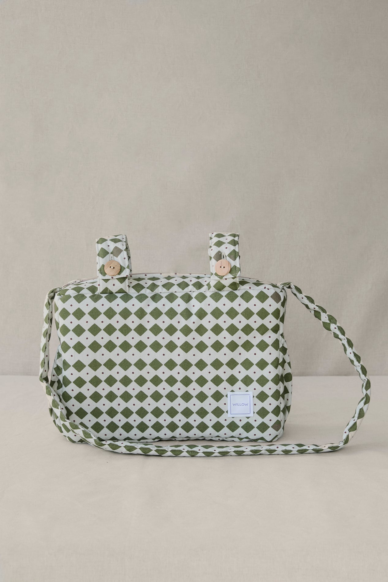 Se ajusta con botones al cochecito. Además cuenta con una cómoda bandolera para que puedas llevar el bolso al hombro a todas partes.