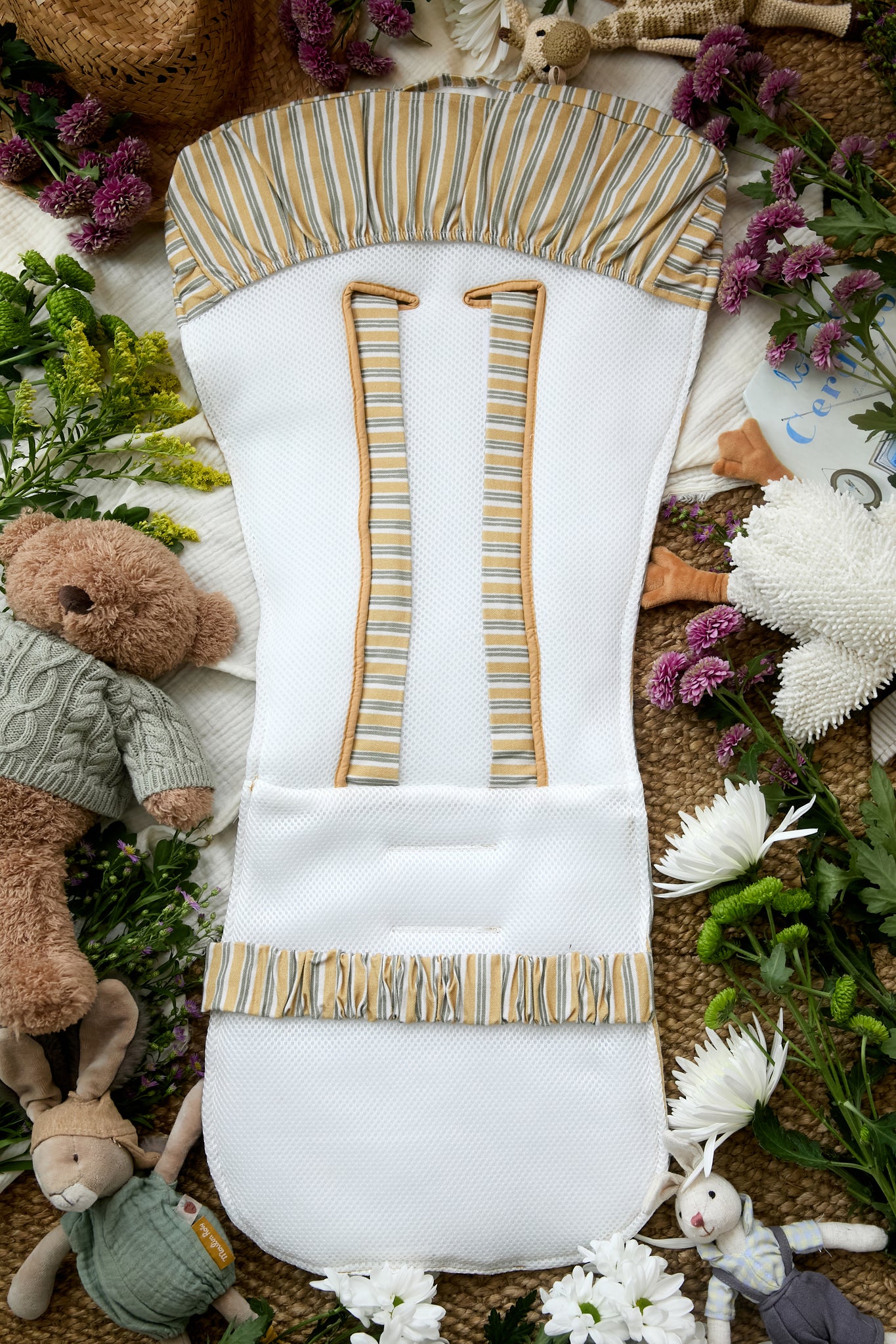 Colchoneta universal para silla de paseo. Compatible con una gran variedad de sillas gracias a su diseño y diversos ojales.