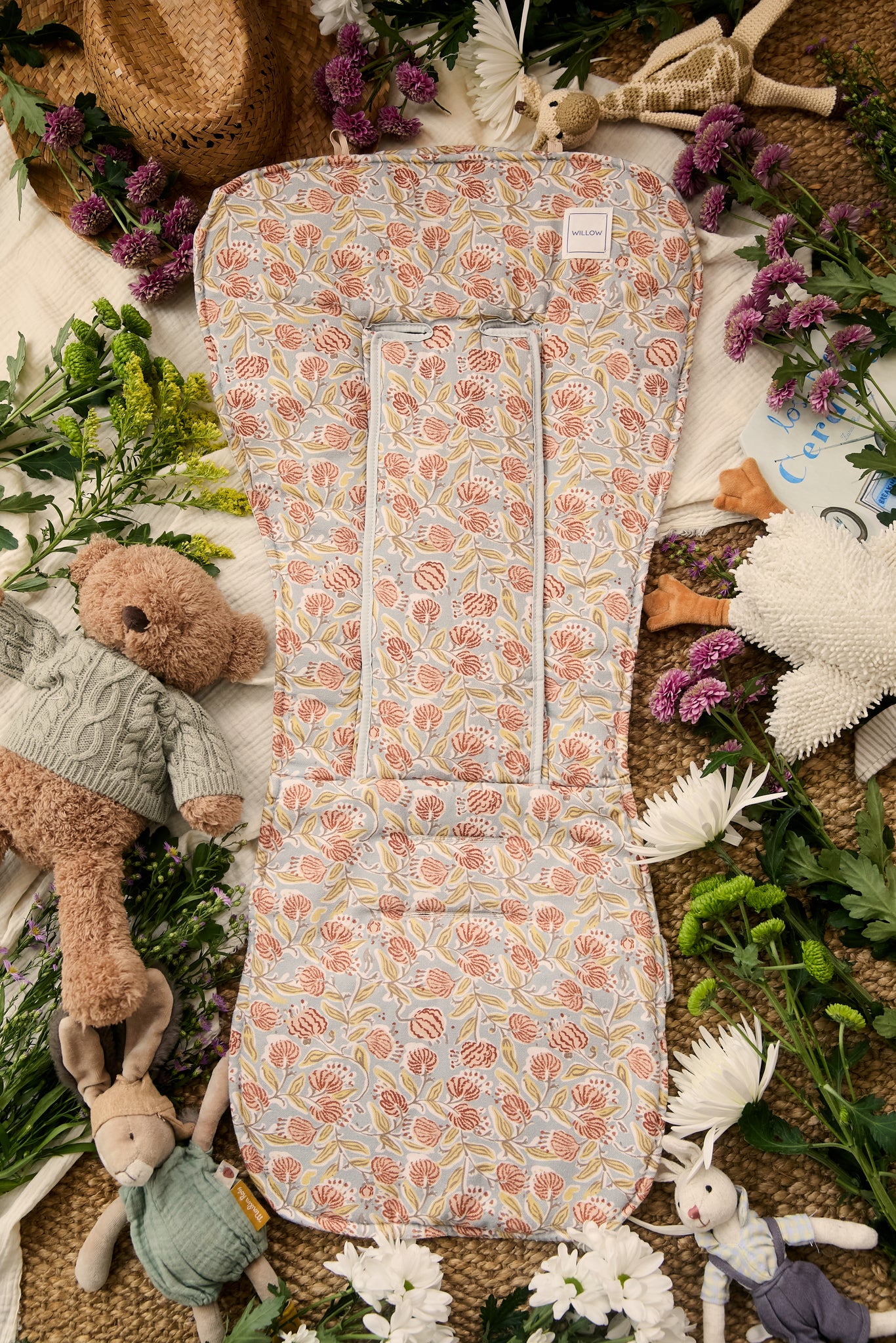 Colchoneta universal para silla de paseo. Compatible con una gran variedad de sillas gracias a su diseño y diversos ojales.