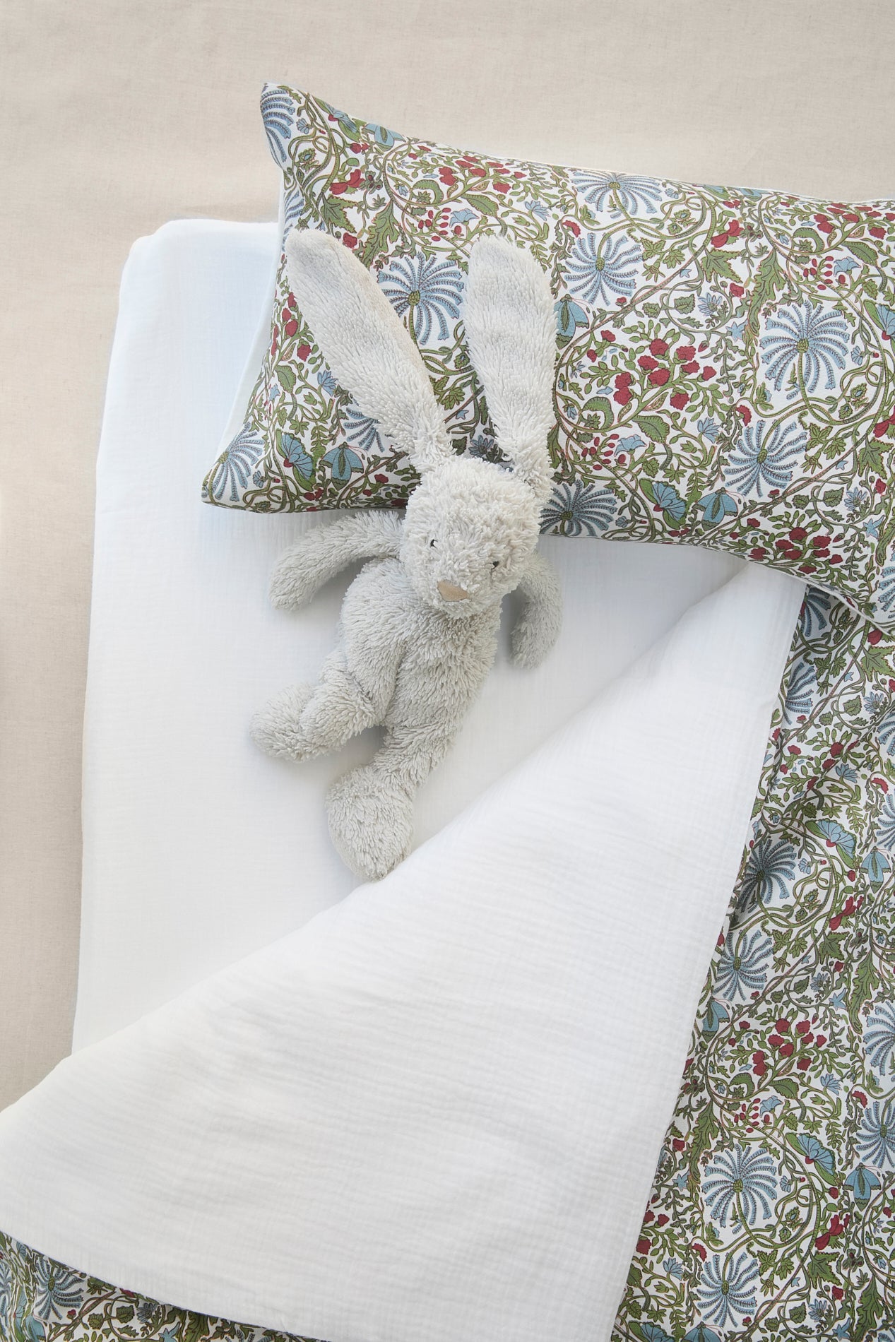 Funda nórdica infantil reversible, con nuestro estampado de algodón Sidney por una cara y bambula blanca 100% algodón por la otra. La funda de edredón tiene cierre con solapa oculta. Perfecta para cunas de 100 x 120 cm.