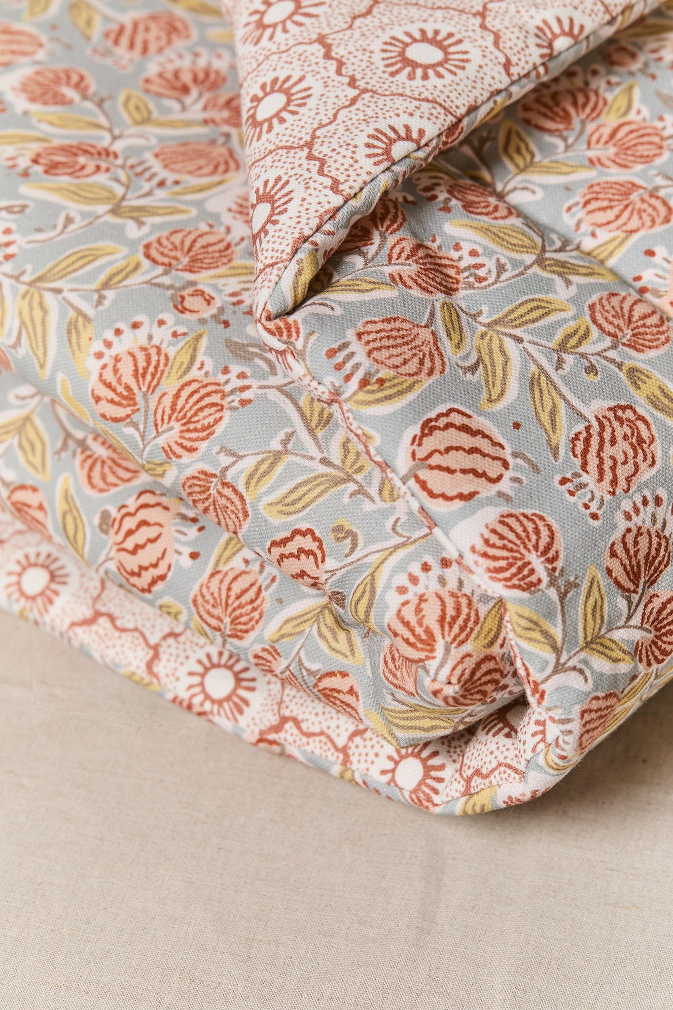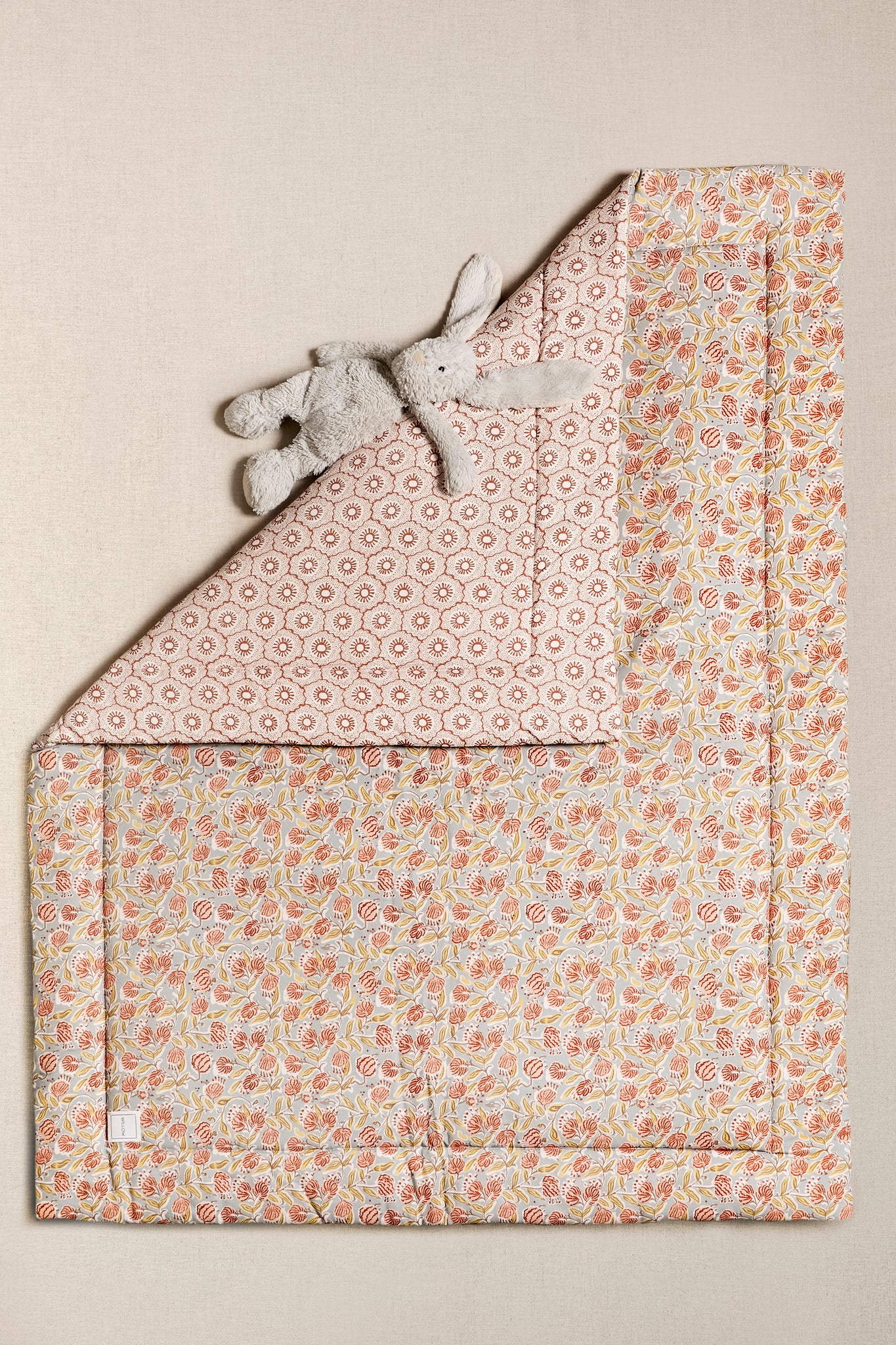 Manta de suelo reversible ideal para usar durante todas las etapas de la vida de tu bebé. Confeccionada con tejidos 100% algodón y rellena de guata para mayor comodidad del bebé. Será tu aliado perfecto para llevar a todas partes. Con un tamaño amplio para los juegos interminables.