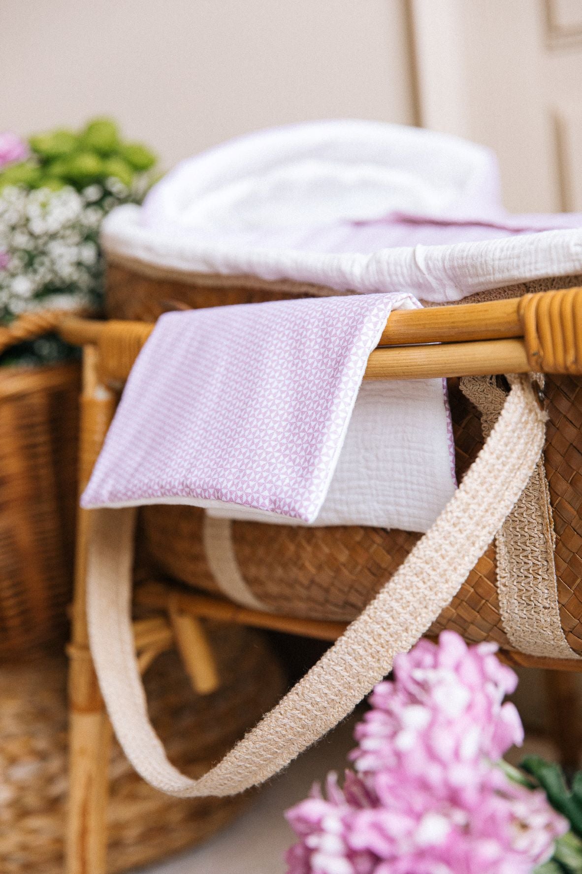 Saco de capazo de entretiempo. Elaborado con tejidos 100% algodón en el exterior y bambula orgánica en el interior. Relleno efecto pluma muy agradable al tacto. Diseño universal pefecto para adaptarse a diferentes modelos de capazo, cunas o minicunas.